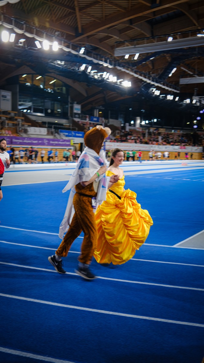 Cheers rang out from every section of the bleachers, applause motivated their every step and waves and fist bumps greeted them at every turn. They were met with numerous photo requests and delightfully playful interactions from other relayers on the track. From gallant bows, to in-character interactions, everyone chimed in to make it an unforgettable experience.